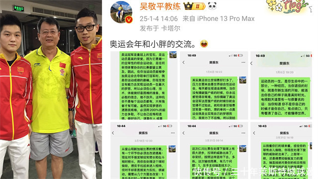 上海队教练透露,王励勤带领上海方面在巴黎奥运会期间为樊振东做出后勤保障,当时大力抚摸小胖脸蛋的经典一幕让人印象深刻。如今,蔡振华铁杆粉丝、前国乒男队临时负责人、小胖昔日主管教练吴敬平也更新动态,晒出了他在奥运年对樊振东走出低谷所做出的帮助。