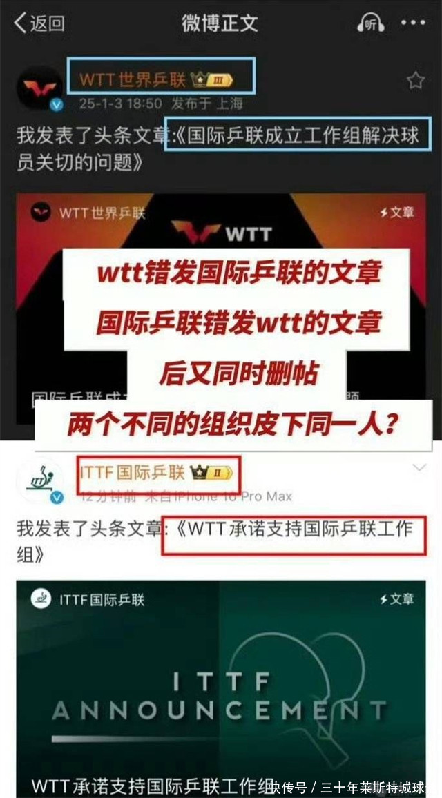 新年到来,国乒的话题热度居高不下,在国际乒联发声成立调查组审计WTT规则后,WTT和国际乒联竟然都发成了对方的声明,被球迷认为是一套班子糊弄人,引发更大质疑。